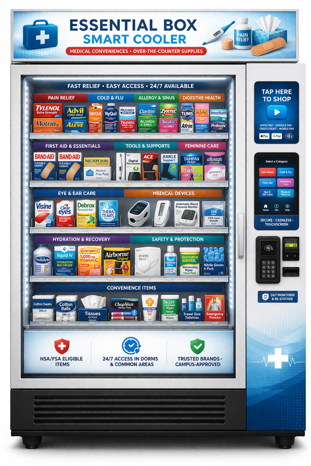 • Over-the-Counter Medications — Pain relief, cold & flu, allergy, and antacids on demand.